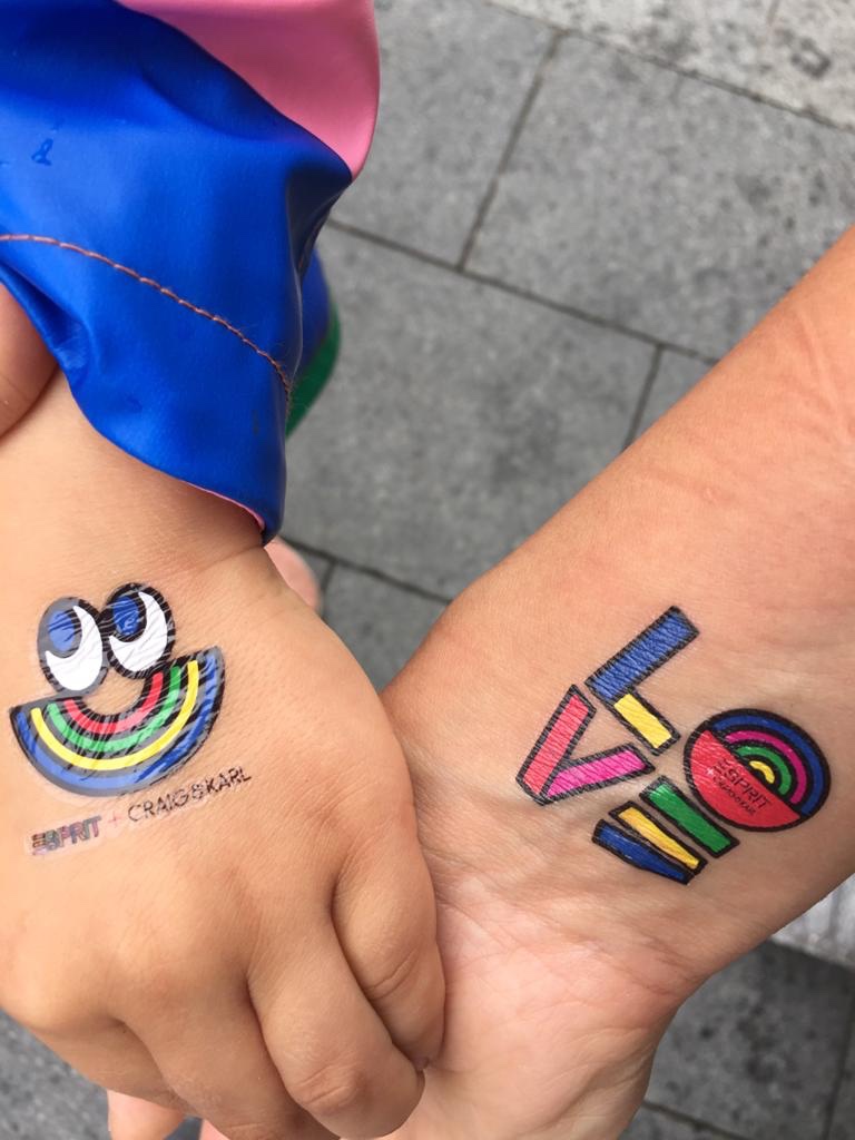 Her little face was a delight to see as she excitedly pointed everything out and even more so when we stopped by a colourful bus that had rainbow face pictures on the floor around it and a table where you could get your own temporary pride tattoo- which we got to show our support of course.