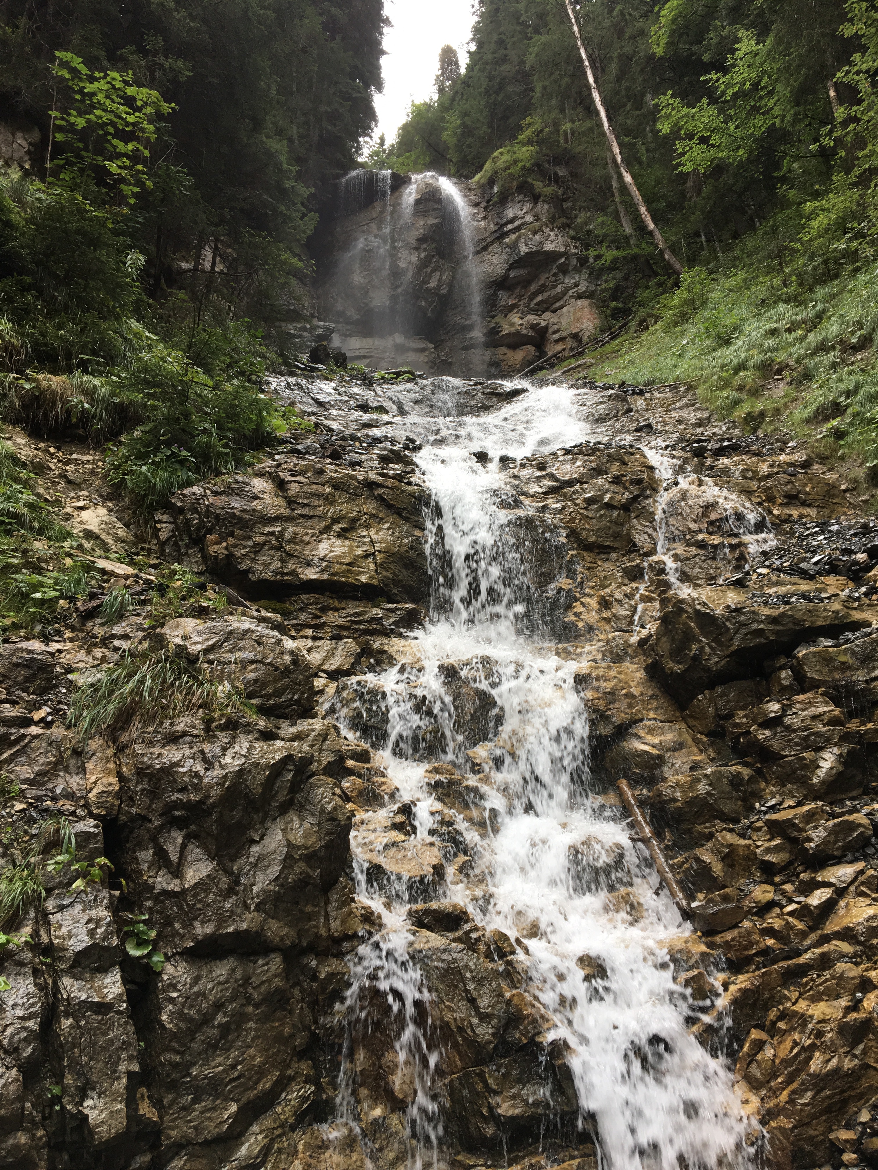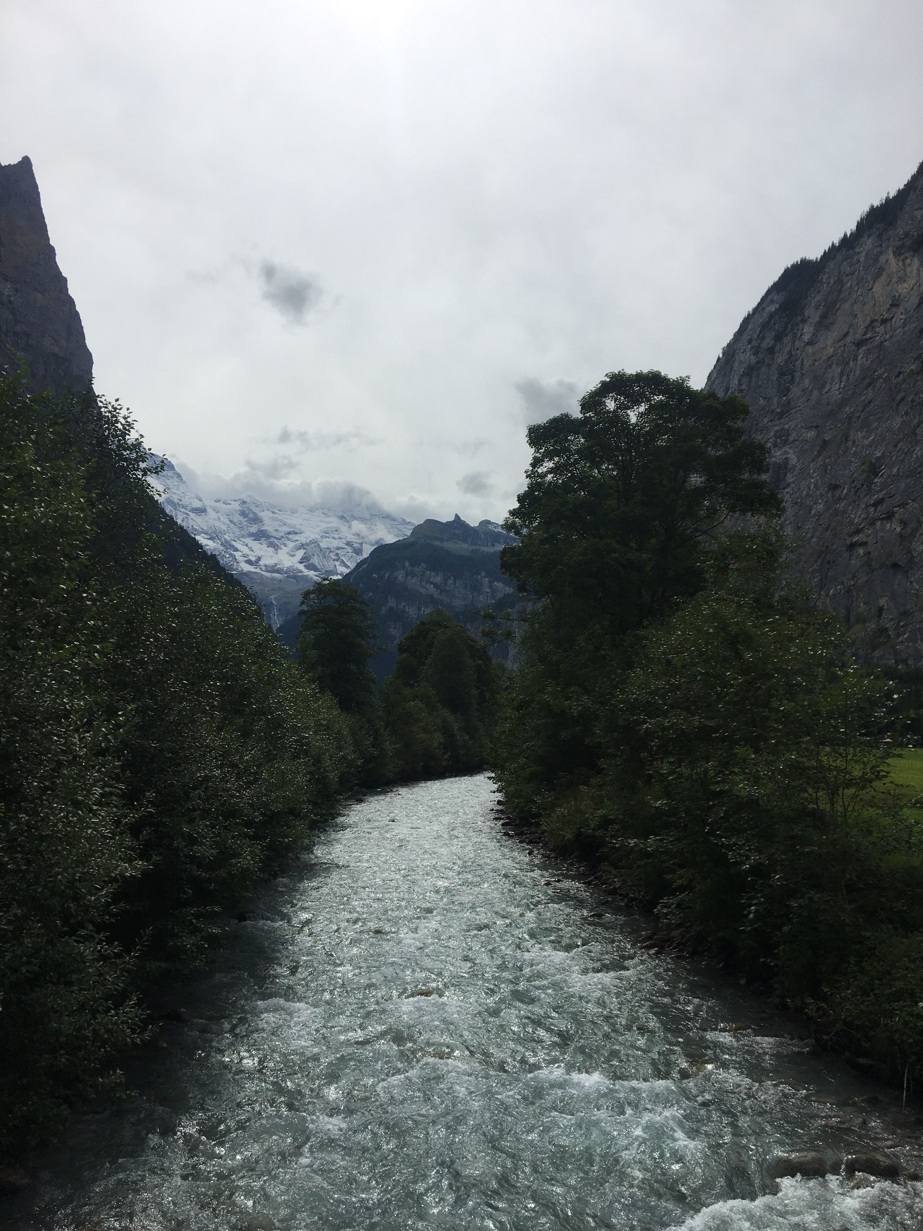 The next day was to be our last day here before moving on and so we thought we would head into Lauterbrunnen and see what it had to offer. We were walking along when we saw another sign to Trummelbach so we thought we would go anyway and enquire at the entrance to find out for sure. Trummelbach falls consists of 10 glacial falls inside the mountains themselves! Sure enough though we couldn’t go inside- apparently there was an accident there some 14 years ago and they haven’t allowed under 4’s since.
