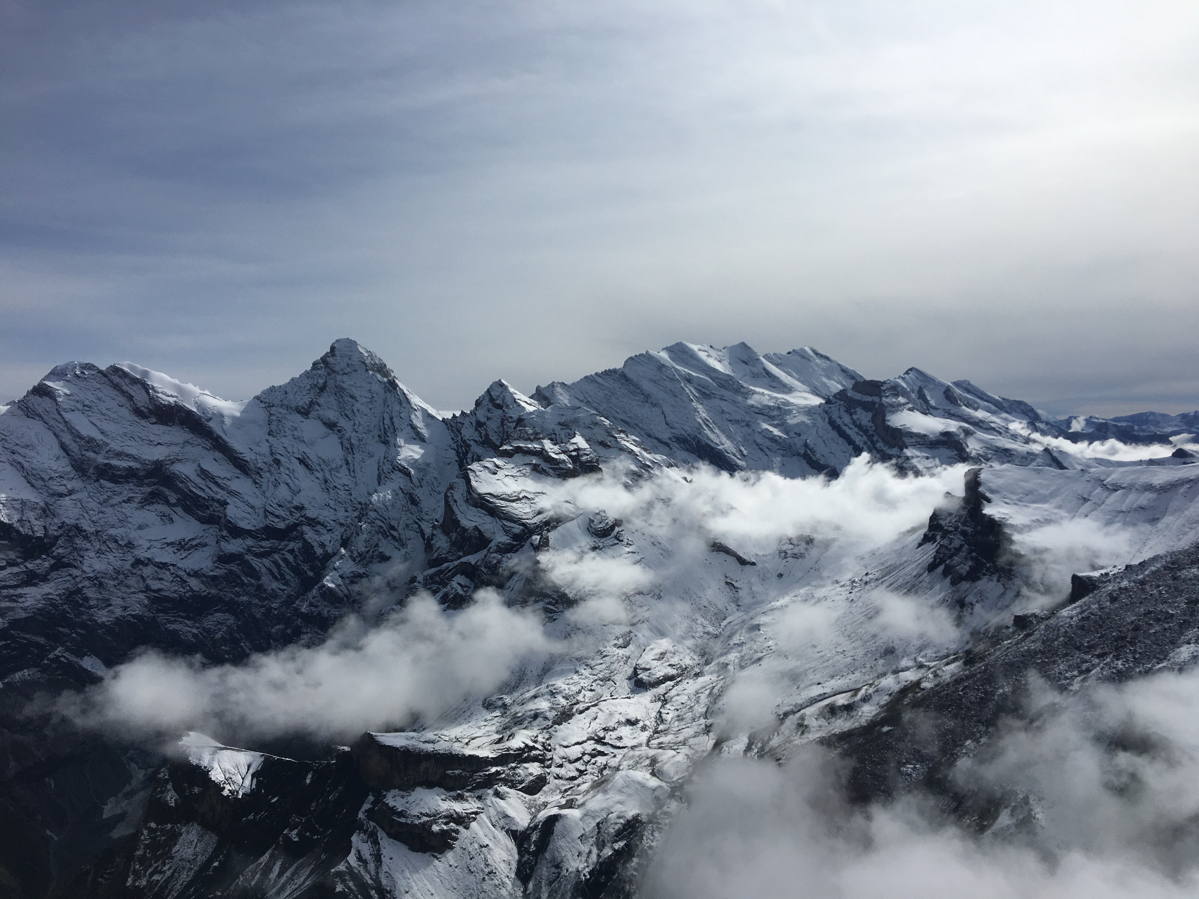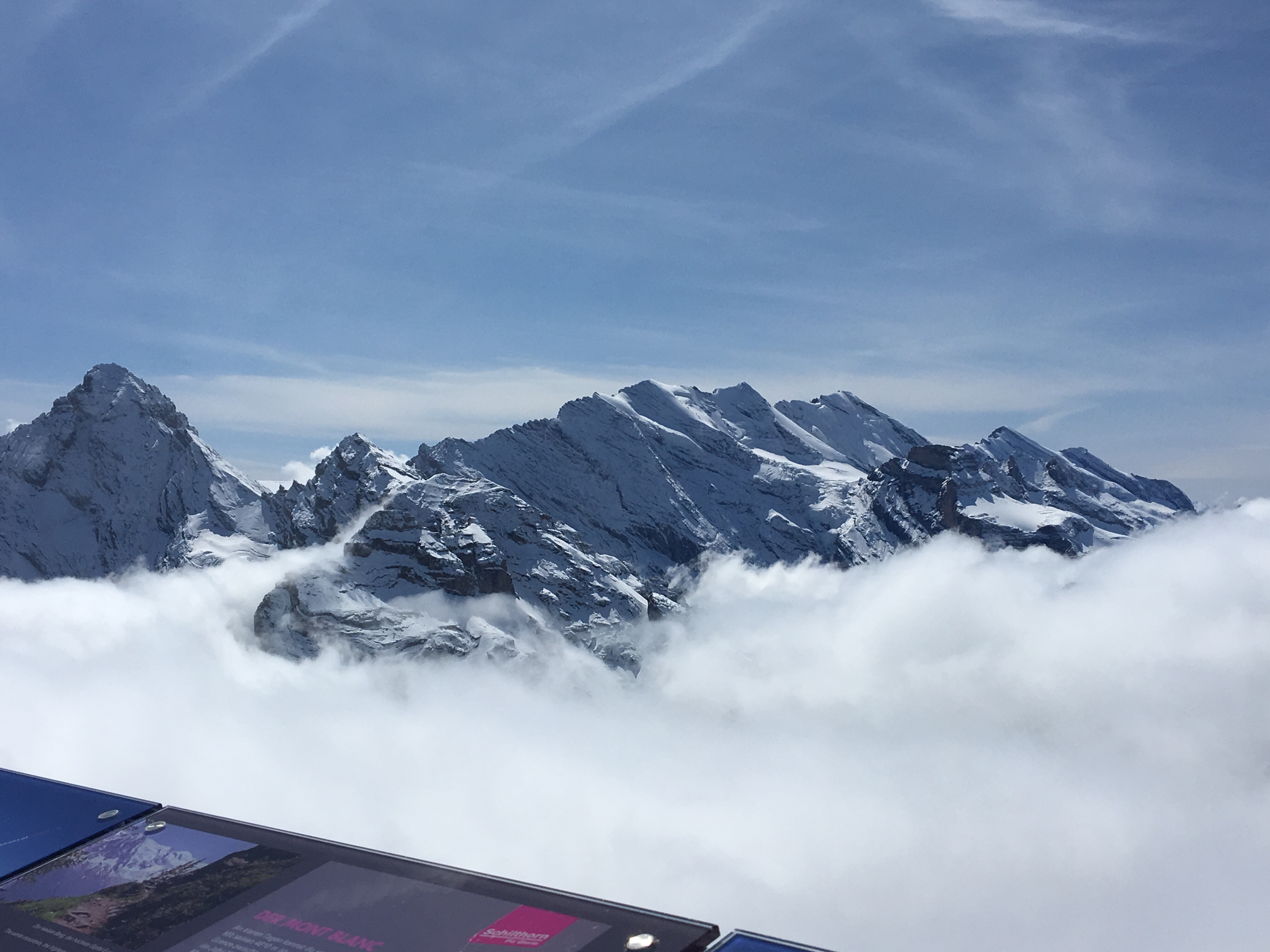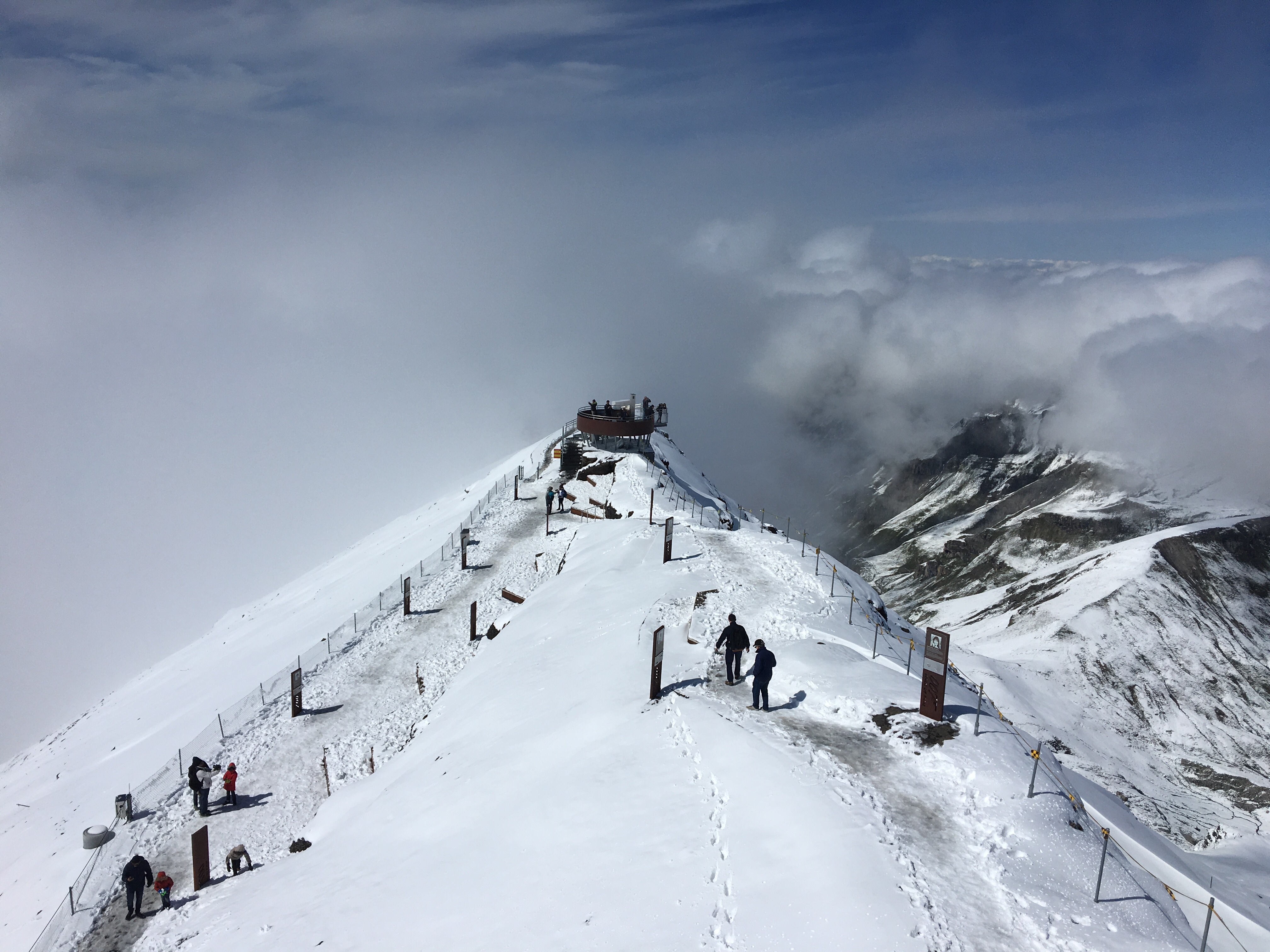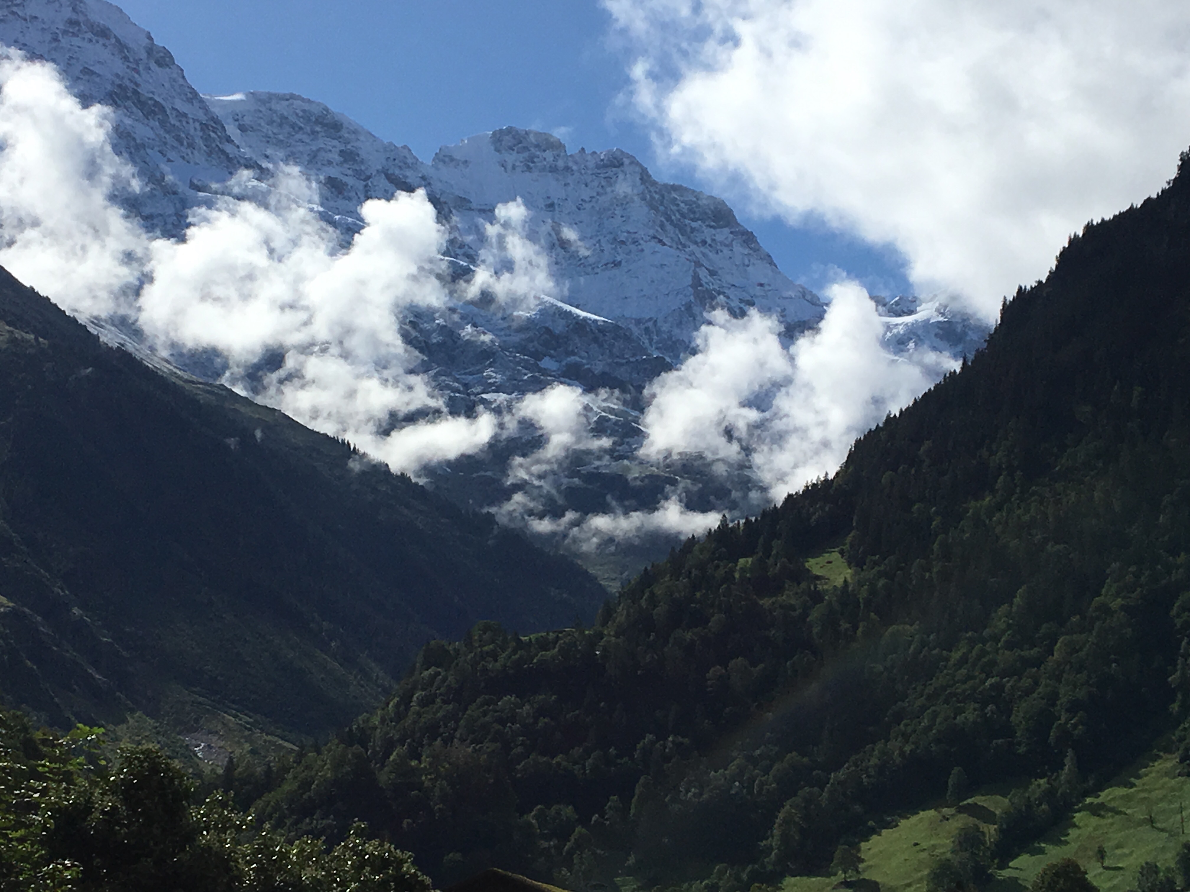 On Monday 9th we walked to the cable car station and paid to go to the top of Scilthorn- it was pricey but we thought, hey we’re here now and when are we ever going to do this again! We got off at Gimmelwald to go to Murren and then from there to Birg. Murren to Birg was a long way up and the atmosphere quickly changed- you could see the altitude change on the clock in the cable car, the air got purer and cleaner and the mountains were now covered in snow. It also started to get very cold as you could imagine. Snow in September!!! It was awesome.