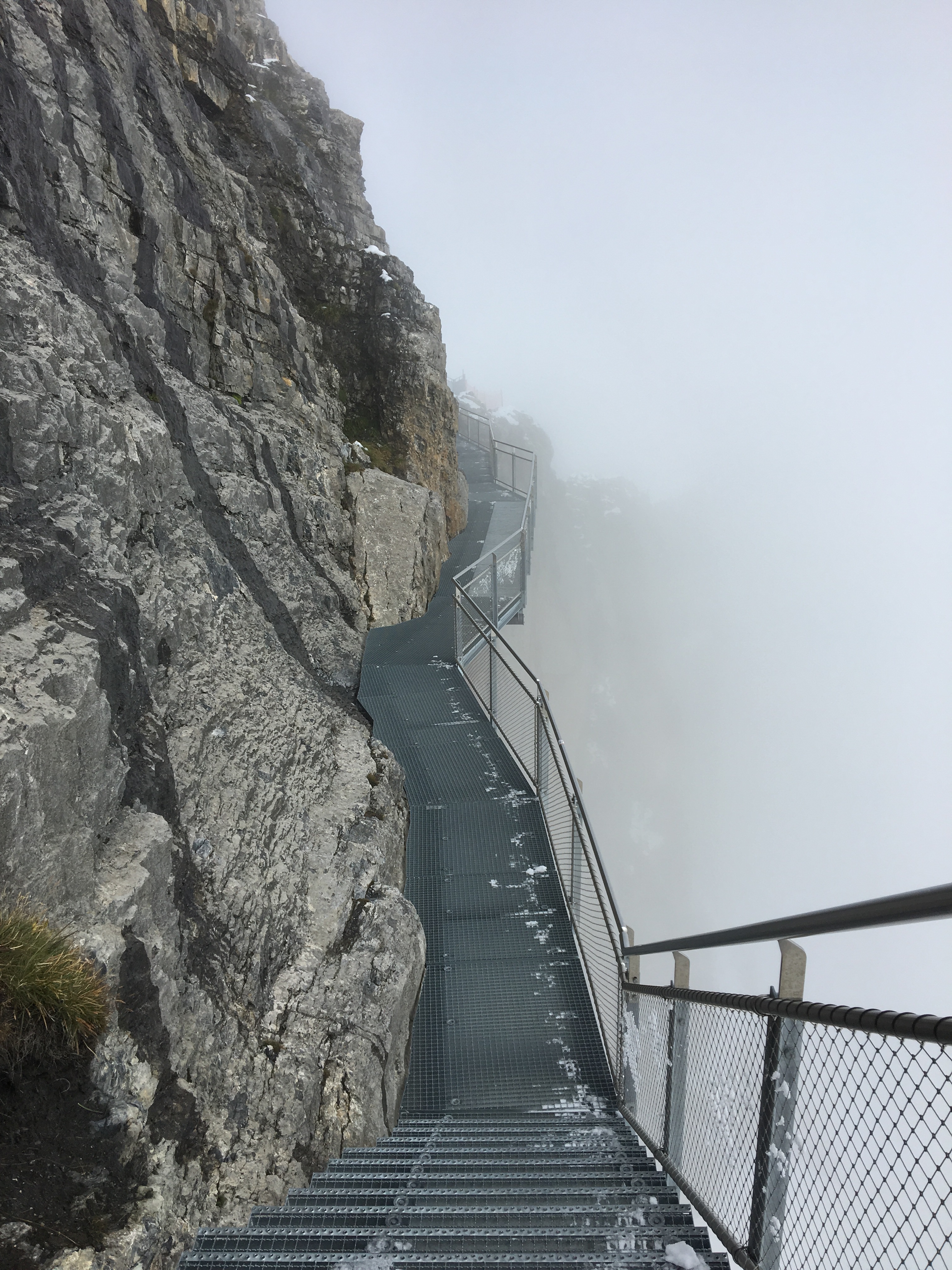 Birg has a thrill section called ‘skywalk’ where you literally get to walk around the mountain on a walkway. You. Could. Not. See. Anything! It was so cloudy that you honestly couldn’t see what was underneath you unless the clouds dispersed a little which it only did very occasionally and then you could see the magnificent drop down. The structure was metal with steps that lead you down onto the walkway which then had ‘activity sections’ for those who are thrill seekers. One of which consisted of a wire cable that was suspended in the air with a wire mesh underneath and around the sides just in case you fall. At first it looked horrifying as I approached it but a member of staff was just passing by when I said “OMG” and he casually waved it off and said “it’s easy” and proceeded to walk across it with elegant ease as though it was nothing. Watching him made my confidence grow and I decided I was going to do it- if he can, I can. And so I did. My husband was just turning the corner when he saw what I was doing and watched in amazement before doing it himself. Our little girl walked around it instead- for one she was scared but two, she was far too small and wouldn’t even be able to reach the two cables either side to hold on to. The member of staff was coming back around and told us we couldn’t go all the way as it was too dangerous and he had to close the end section but we could walk around as far as it let us before turning back. Well, the last bit that we could get to looked absolutely insane. It was a wire mesh tunnel that was literally suspended in the air. You couldn’t get out the other side though as this is where the walkway ended safely. If I didn’t have my son on my back I probably would have entered the tunnel even if it was just for a few seconds. I like to think I would anyway!